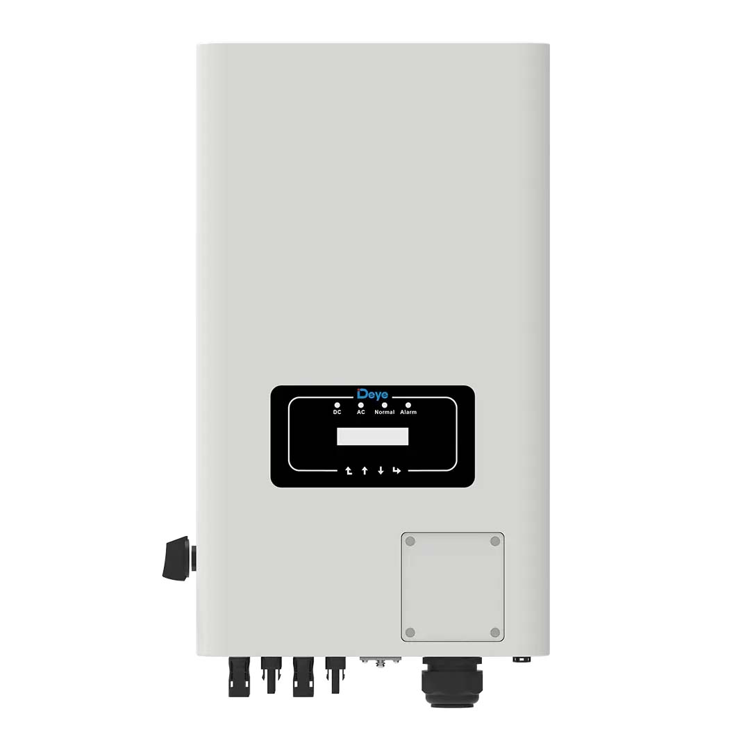 Сетевой солнечный трехфазовый инвертор DEYE SUN-30K-G04 мощностью 30 кВт это современный и высокоэффективный фотоэлектрический сетевой инвертор с двумя MPPT контроллерам. Данный инвертор полностью подходит для построения объекта микрогенерации. Трехфазные инверторы серии SUN-G05 имеют уникальную встроенную функцию - возможность снижения мощности по команде делимитера (устройства отлеживающего передачу электроэнергии в сеть). Датчики делимитера устанавливаются перед счетчиком, если определяется отдача электроэнергии в сеть, делимитер дает команду инвертору снизить вырабатываемую мощность. Тем самым предотвращается отдача электроэнергии в сеть (очень часто российские счетчики считают отданную электроэнергию как потребленную). Сетевой инвертор используется только совместно с городской сетью, принцип его работы заключается в подмешивании ( добавлении) энергии вырабатываемой солнечными батареями в вашу сеть для обеспечения дополнительной нагрузки или экономии. К примеру, если текущее потребление на вашем объекте 10 кВт*ч, а солнечные батареи вырабатывают 3 кВт*ч, то из городской сети вы возьмете всего 7 кВт*ч, а оставшиеся 3 кВт*ч в вашу сеть вольет сетевой инвертор.