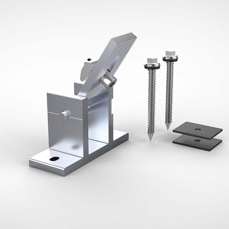 Комплект крепления для реализации установки наклонного крепежа солнечных модулей на плоскую крышу, обеспечивая возможность регулировки угла наклона солнечных модулей от 15-60 градусов. Подходит для комплектов с регулируемым наклоном 10-15º, 15-30º, 30-60º.